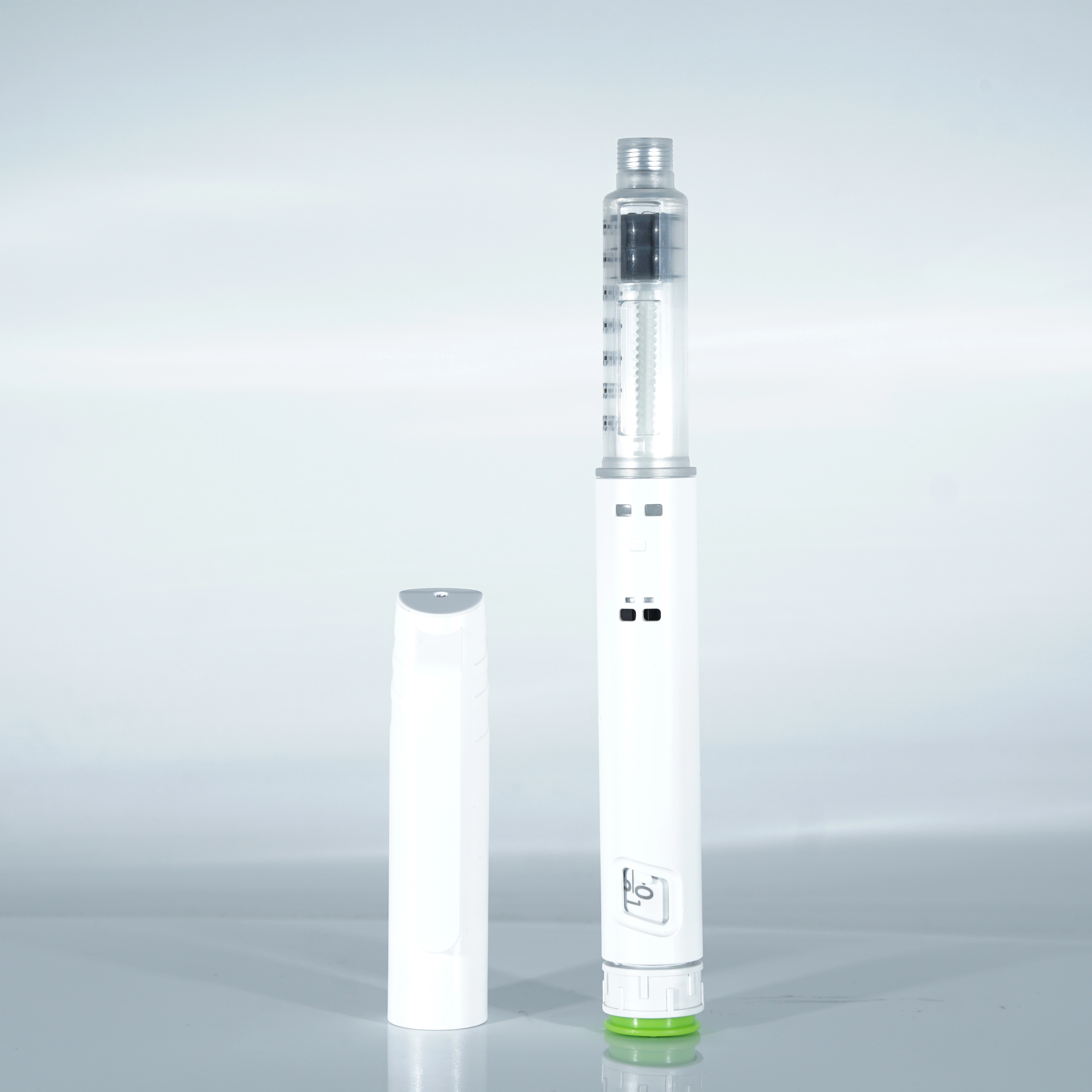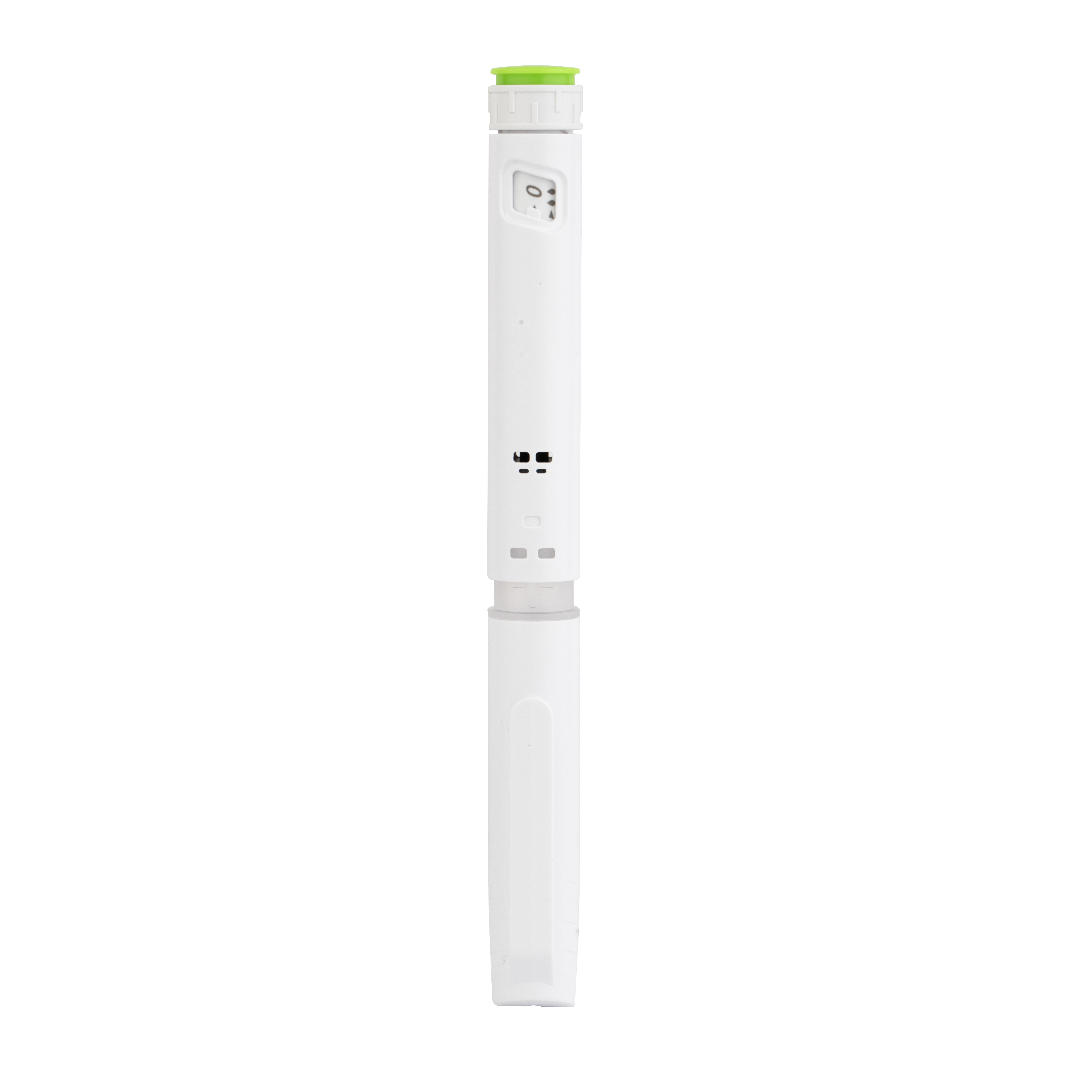 Este modelo combina um corpo branco elegante com uma tampa de segurança verde para facilitar a identificação. O design compacto e pronto para uso elimina a necessidade de recarregar ou limpar, tornando-o a escolha ideal para configurações clínicas, farmácias e auto-administração em casa.